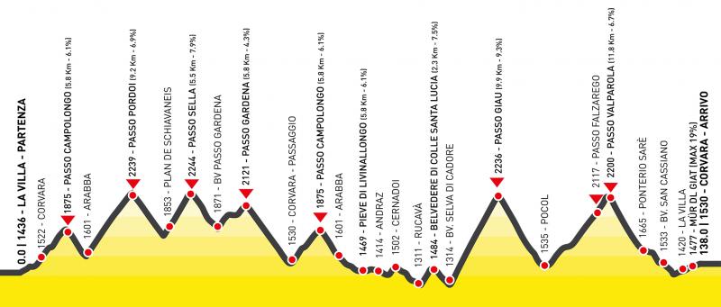 | donderdag | Alleghe-Badia | 100 km | 2800 m | San Pellegrino, Sella |